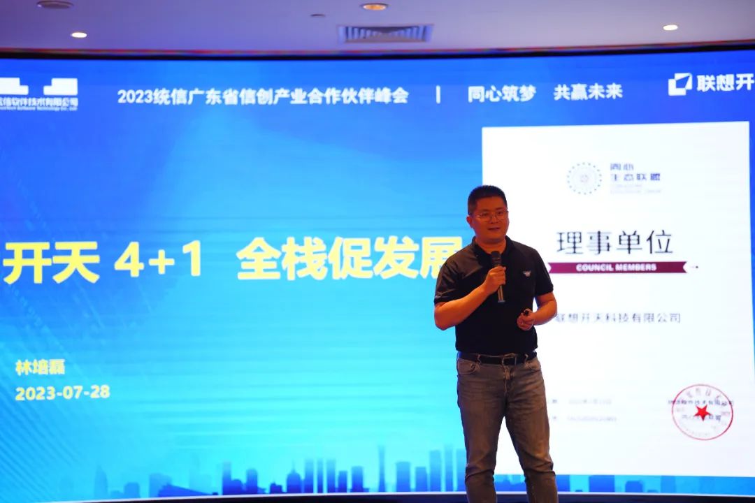联想集团华南信创事业部总经理林培磊表示,联想开天以计算机产品为核心,与统信软件共同加强自主技术研发,激活中国科技能力和活力,为千行百业建设繁荣的创新生态。