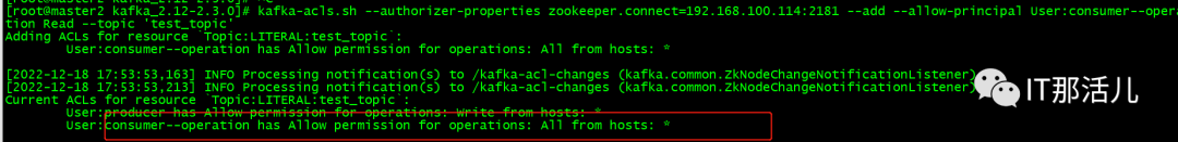 admin用户 是zk 集群之间使用的。 kafka用户 是 broker 与 zk 之间使用的。