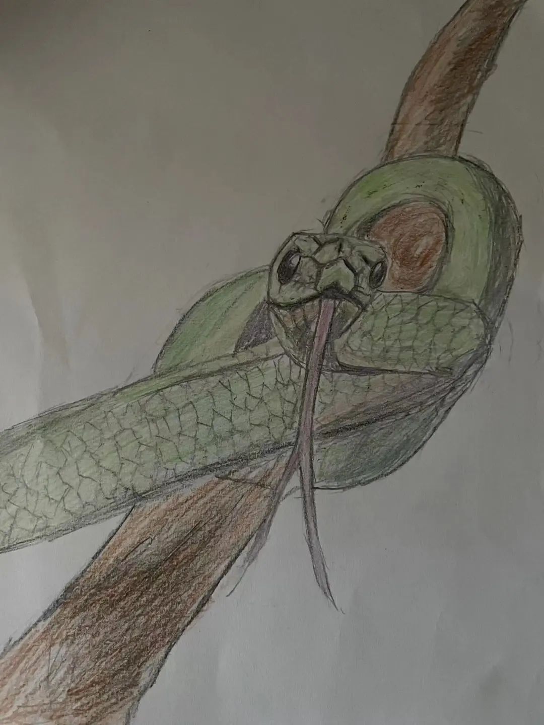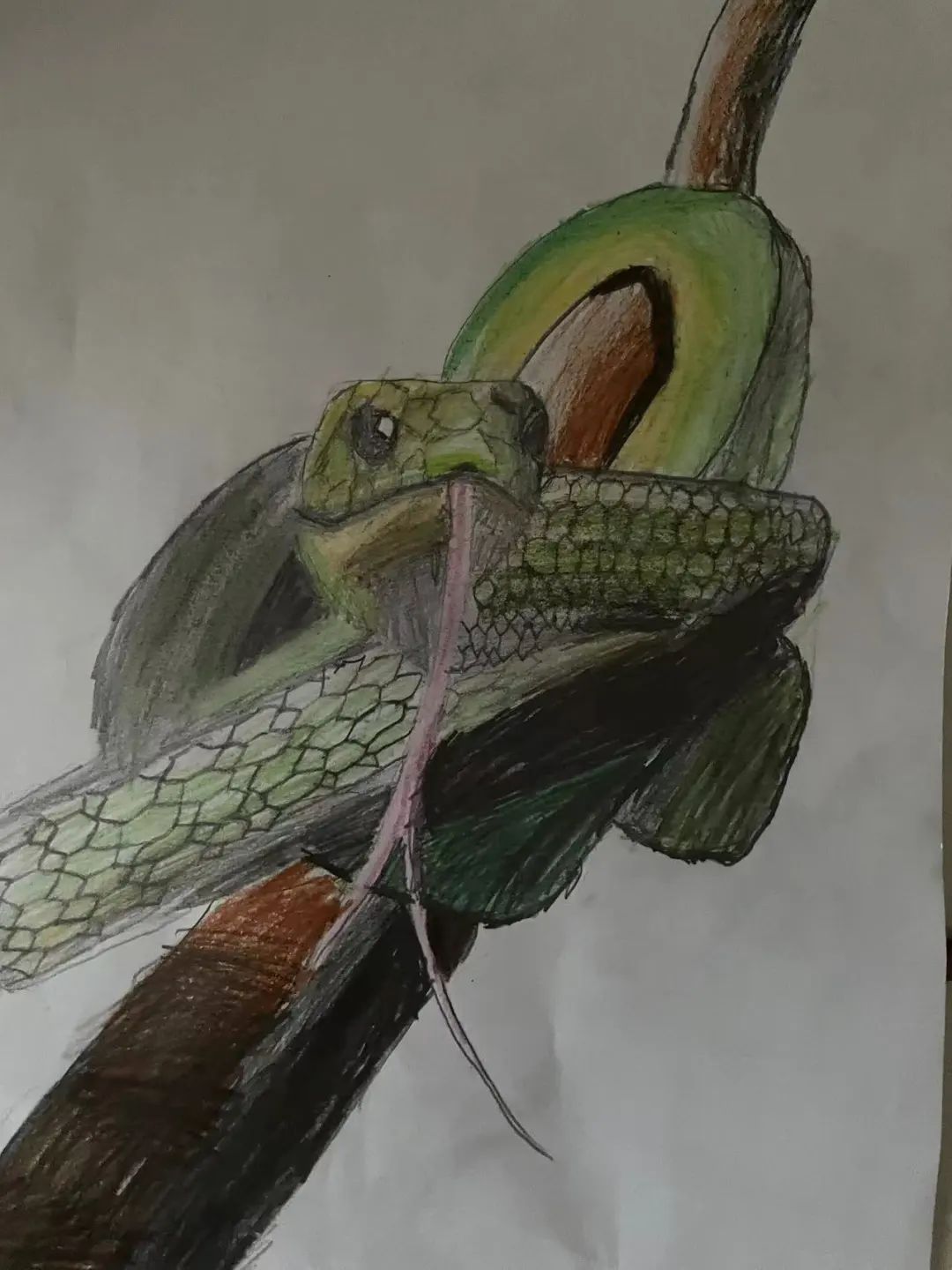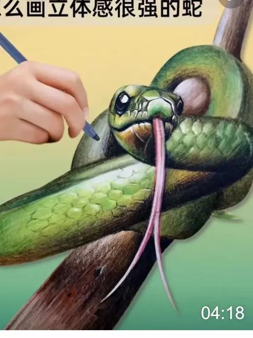 昨天晚上时间还早,孩子说我们来玩一个游戏吧,是比赛画画,两个人画同一幅画,看谁画得像。我说你来选图片,结果没一会儿孩子就选了下面这条蛇。