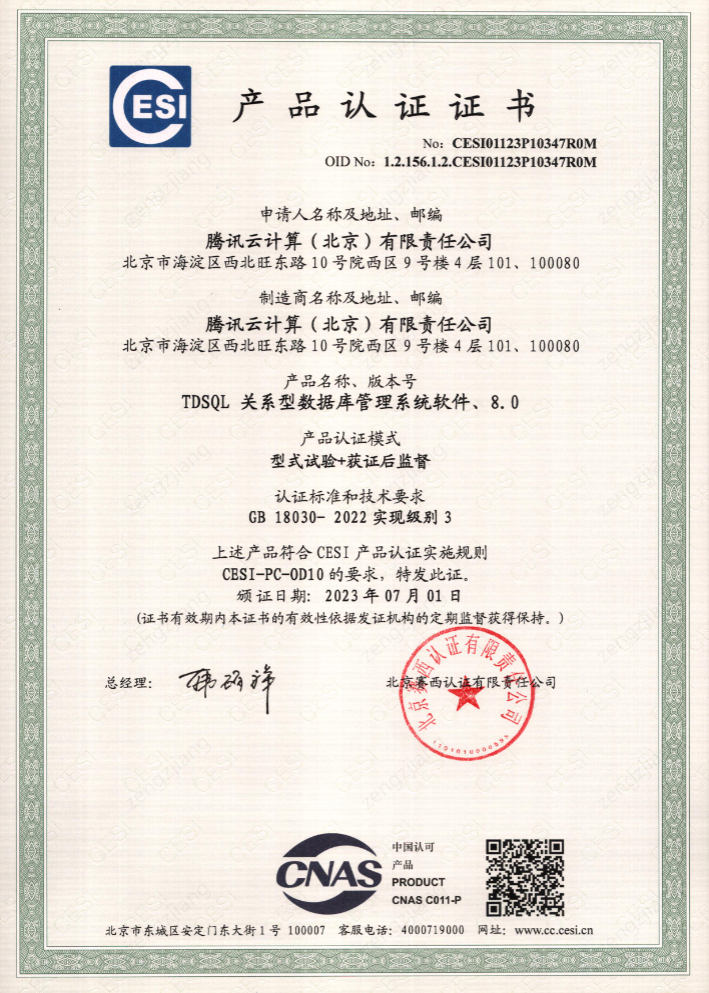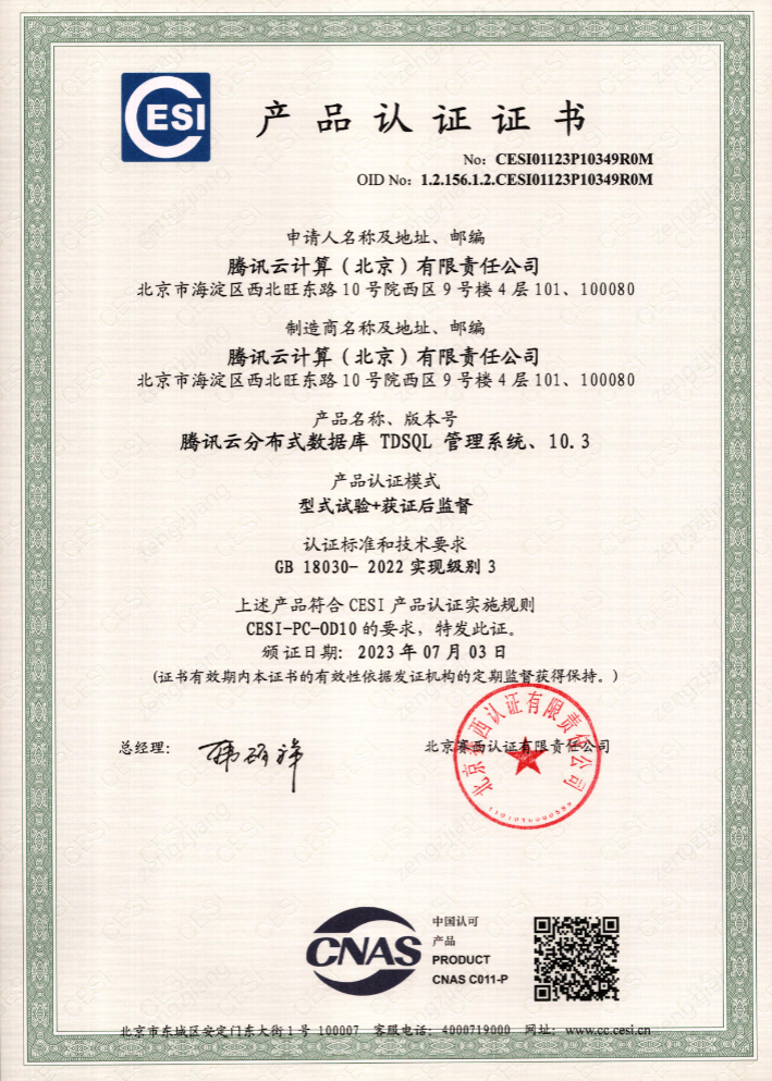 8月21日,在中国电子技术标准化研究院举办的“强制性国家标准GB18030标准宣贯会暨首批通过认证测试产品发布会”上,腾讯云数据库TDSQL、操作系统TencentOS作为首批通过认证测试的产品,获得GB18030-2022《信息技术中文编码字符集》最高级(3级)认证证书,同时也获得GB18030优秀贯标企业表彰。