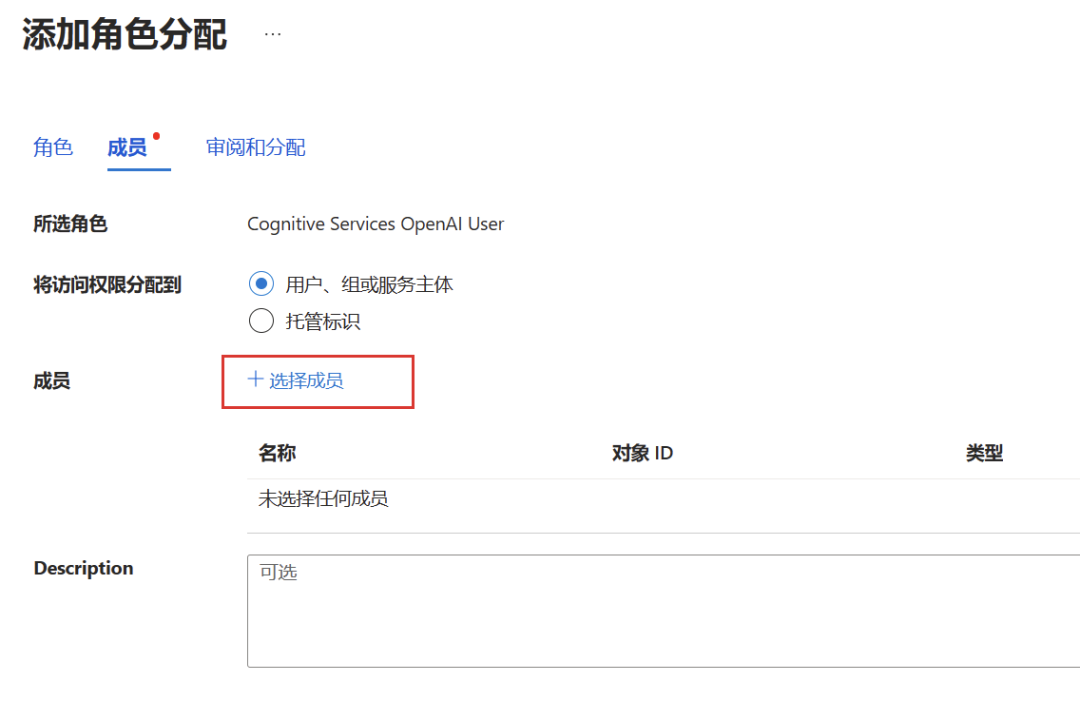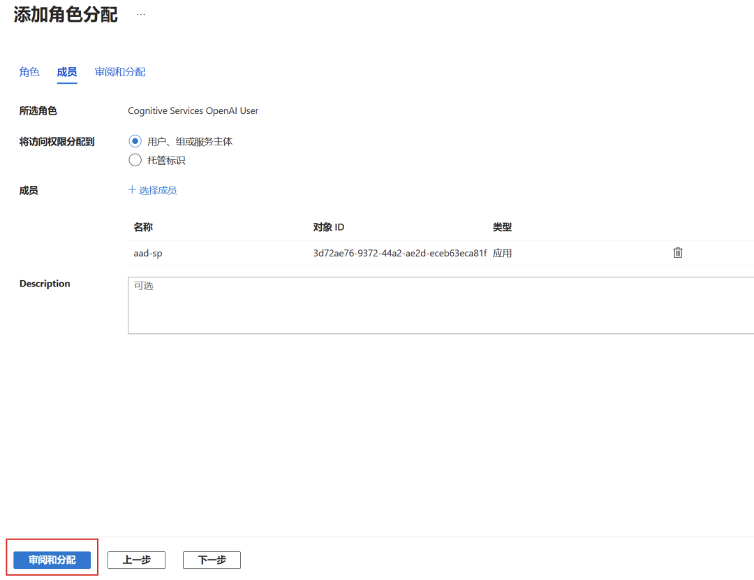 分配角色和权限:为服务主体分配适当的角色和权限,以便它可以访问您的 OpenAI 服务。这些权限可以根据您的需求进行调整,以实现最佳的安全性和功能。