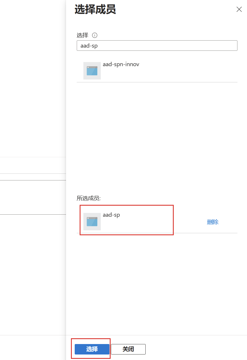 点击“选择成员”,选择 AAD 应用作为授权目标。