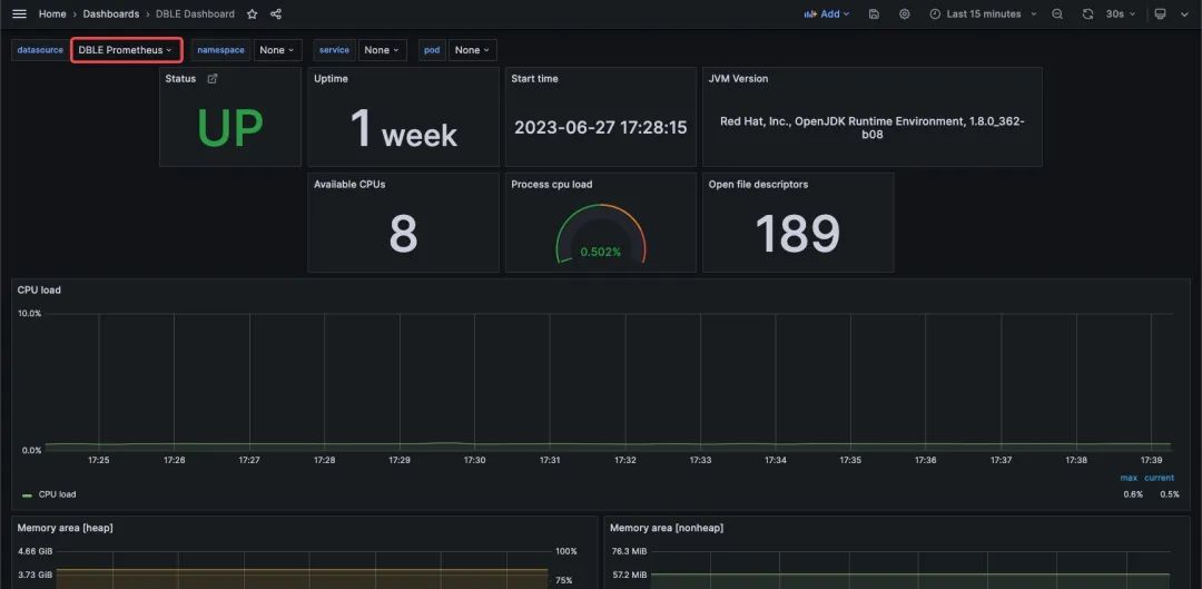 本篇文章将采用 Docker 方式搭建 Grafana + Prometheus 实现对 DBLE 的 JVM 相关指标(如:CPU、Memory Pool、GC、Thread)的监控系统。