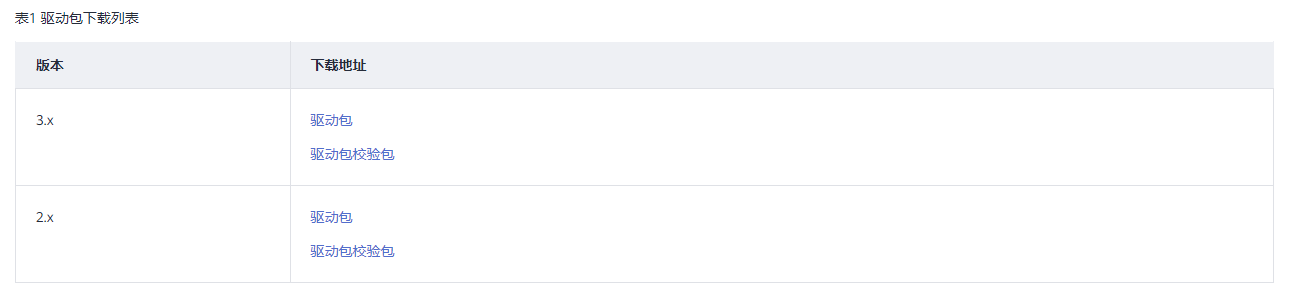 根据不同版本的实例,下载不同版本的发布包,如表1所示。