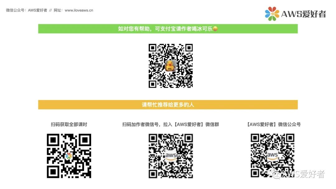 如果您想加入「AWS爱好者」微信群和其他同学交流,请:chenmoemo,后拉入「AWS爱好者」微信群。