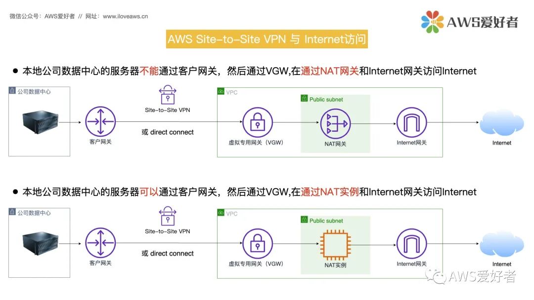 接下来我们看几个AWS Site-to-Site VPN 与 Internet访问的架构,在认证考试中可能会有一些题目涉及到这些内容。