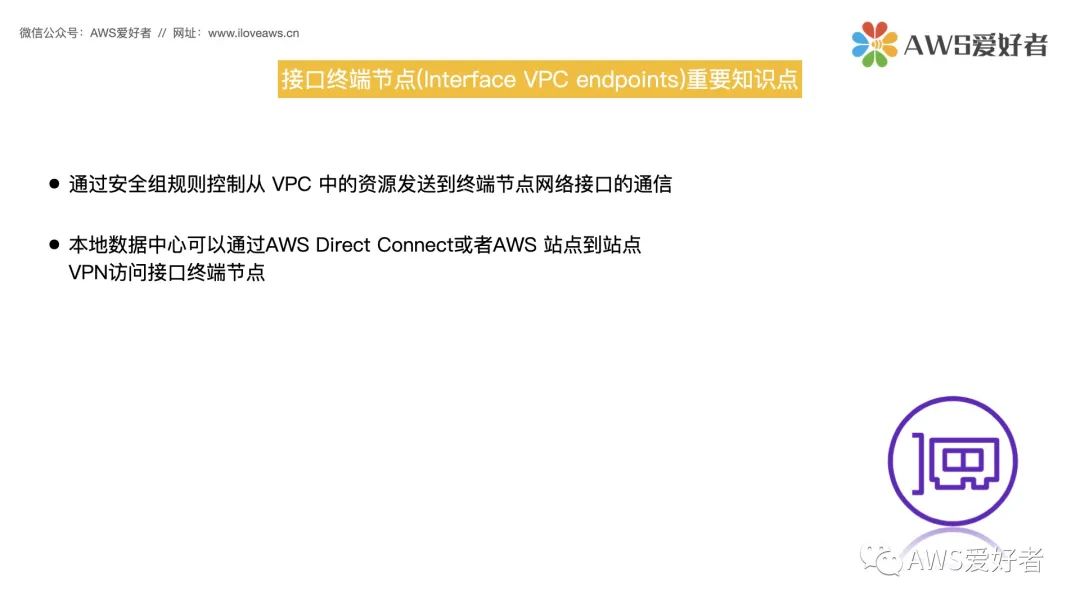 Hello大家好,欢迎来到《AWS解决方案架构师认证 Professional(SAP)中文视频培训课程》,我们继续VPC终端节点的内容,上个课时我们讨论了网关终端节点,本节课我们将讨论接口终端节点。