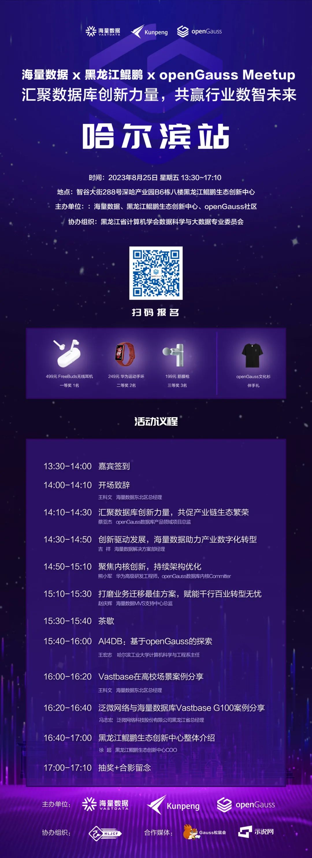 由海量数据、黑龙江鲲鹏生态创新中心、openGauss社区联合主办的“海量数据 x 黑龙江鲲鹏 x openGauss Meetup (哈尔滨站)”活动将于8月25日在智谷大街288号深哈产业园B6栋八楼黑龙江鲲鹏生态创新中心举办!我们诚邀您的莅临!