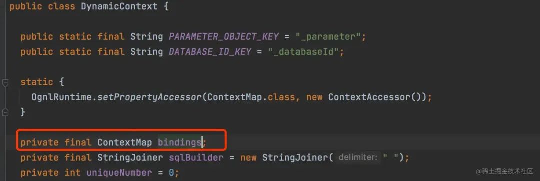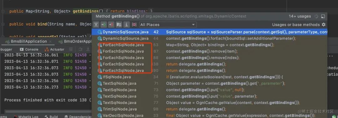 类源码查看,DynamicContext 又一个 ContextMap 类型的参数bindings,继承了 HashMap 相当于一个Map集合,接着看这个类中的 getBindings 方法,看到了 ForEachSqlNode 这类调用了 getBindings 方法,简单的说就是 ForEachSqlNode 通过 getBindings 方法,将 SQL 参数和参数的占位符统一 put 到 ContextMap 这个集合里面,主要是这里面的参数和占位符无法被 GC 回收,并发查询量多的情况下就会导致 OOM。