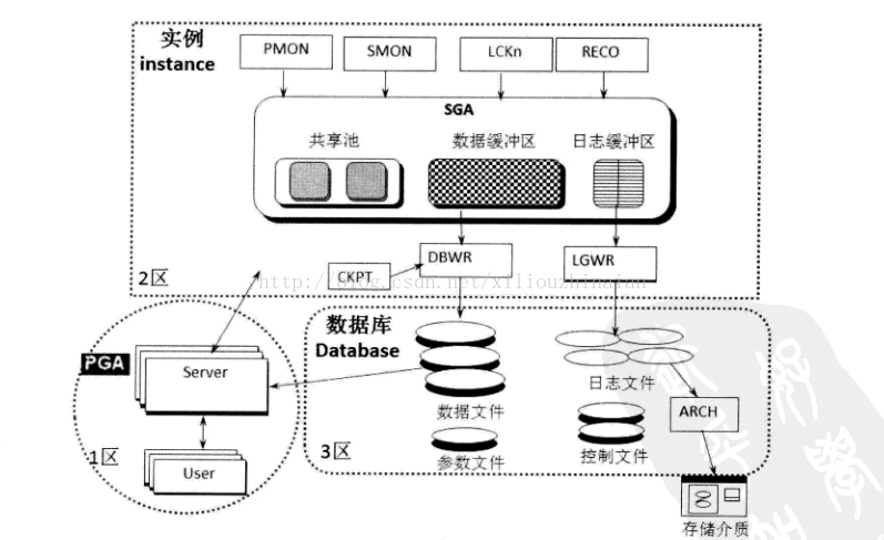 - 数据库实例包括:内存(SGA)和后台一堆进程