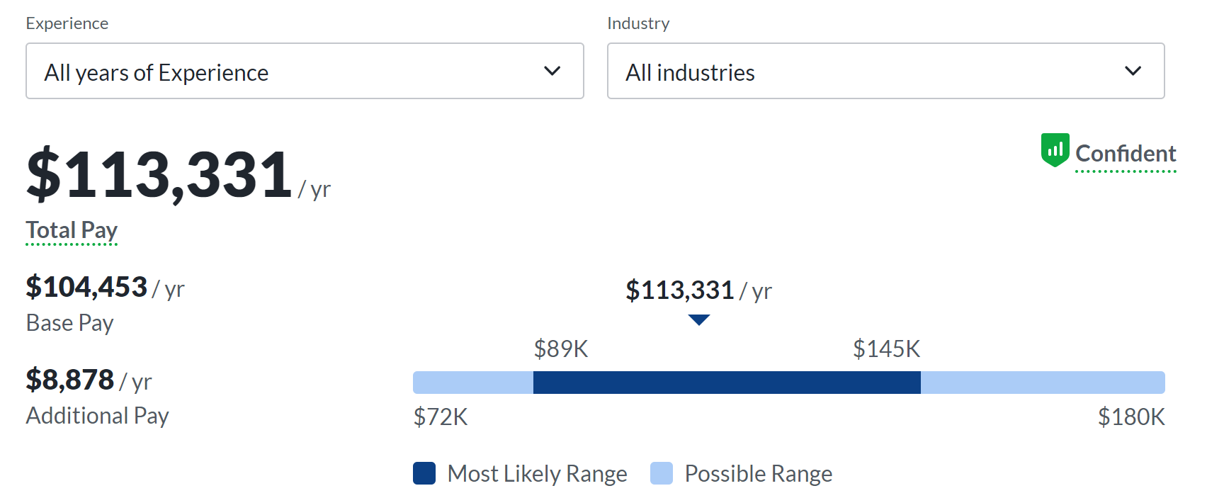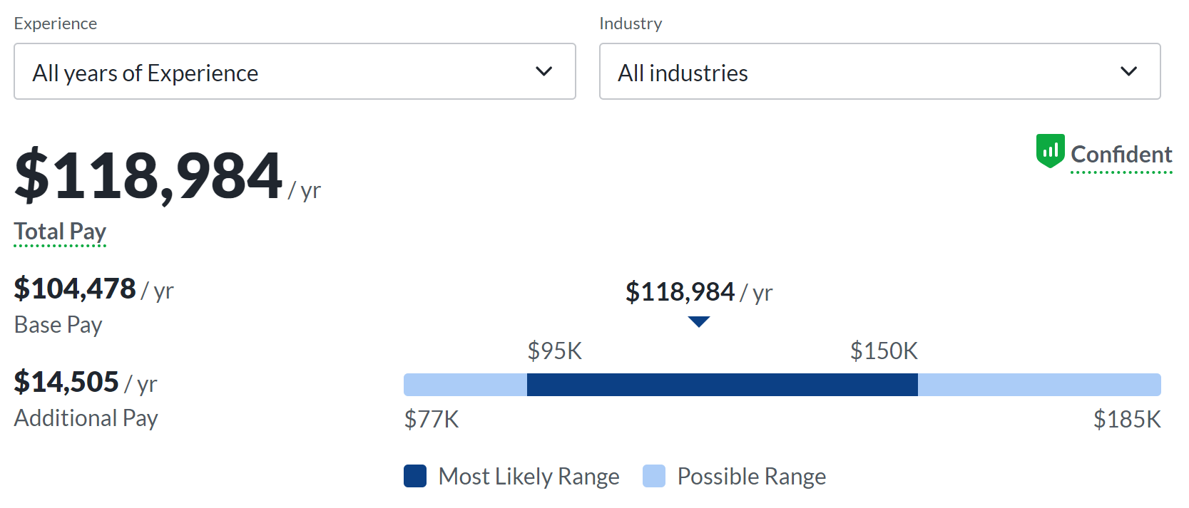 PostgreSQL DBA 平均年薪为165,489美元,不同工作年限的DBA平均年薪如下: