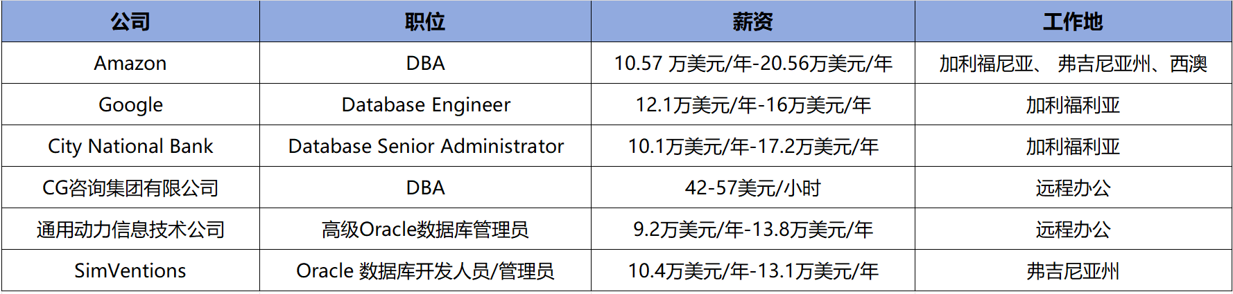 Oracle DBA 平均年薪为113,331美元,不同工作年限的DBA平均年薪如下: