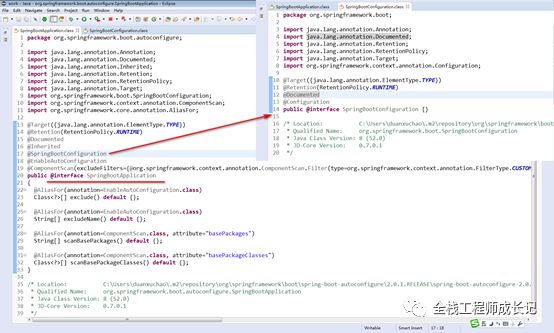 @SpringBootConfiguration中包含@Configuration。在注解时可以用@SpringBootConfiguration来代替@Configuration注解。