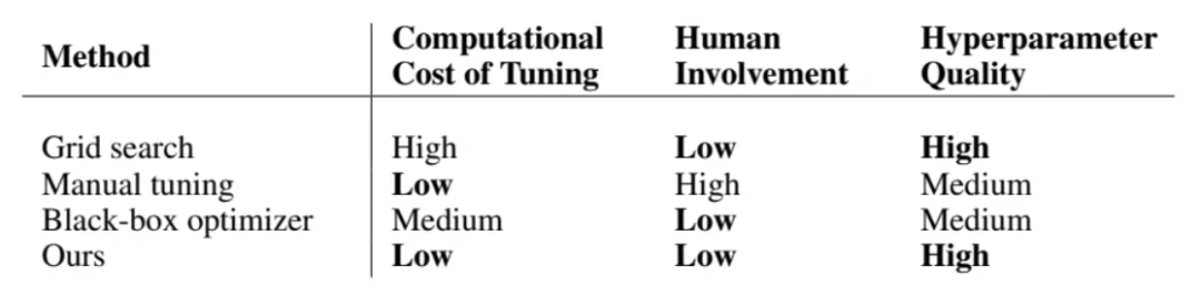 3、黑盒优化:利用优化器来探索参数配置,这种方法同样需要大量计算,且经常只能得到次优解,差强人意。