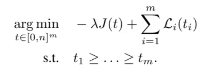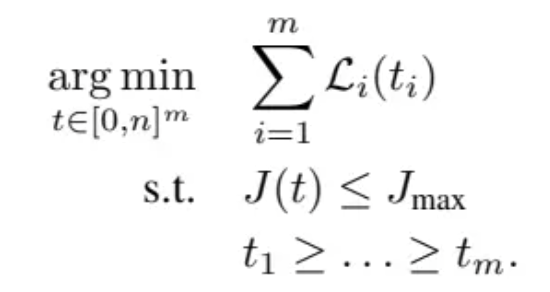 经过上一节,我们已经获得了快速估算一组参数配置的召回率和吞吐量的方法。根据我们的目标,给出期望的召回率和吞吐量要求,得到一组权衡二者的参数配置,文章给出如下约束优化表达,即,限定召回率上限,最小化召回率损失,