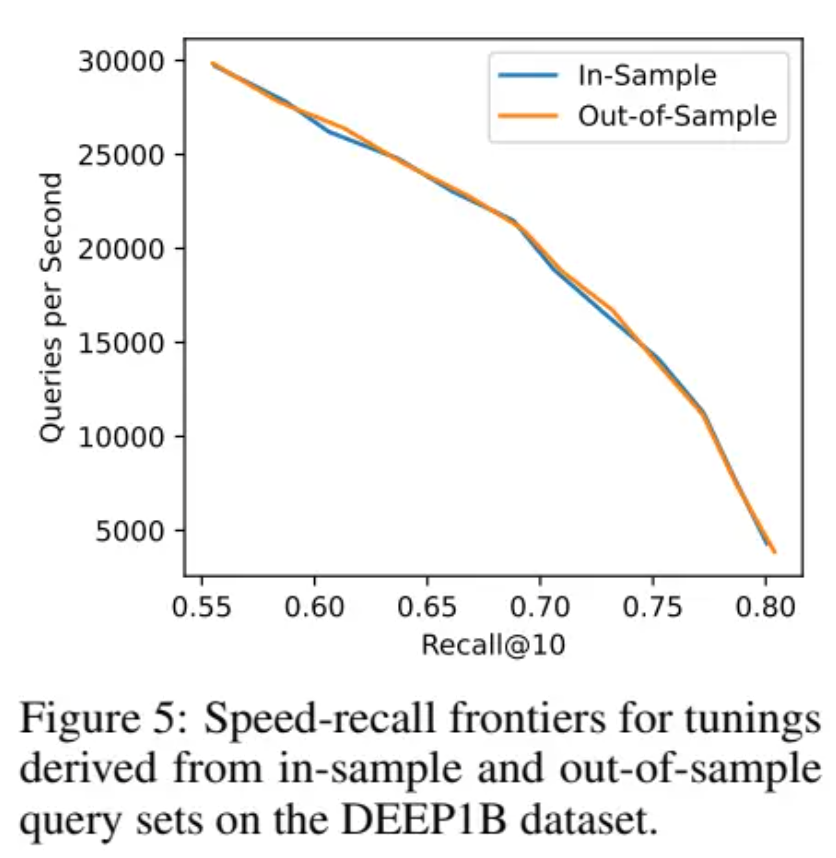 因为在估算召回率时使用的是采样的query,而不是真正全量的query,文章进一步实验来评估方法对于采样率的泛化性。如下图,可以看出,在In-Sample和Out-of-Sample两种情况下,该方法的配置出的量化索引性能差异微乎其微。