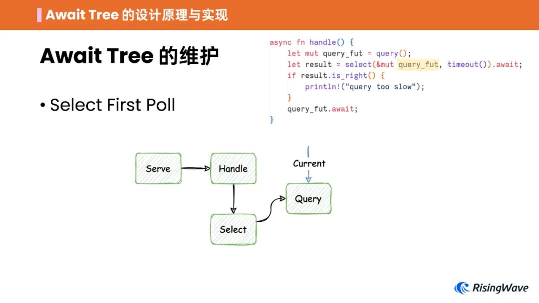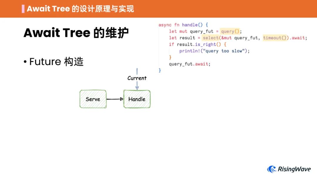 这三个 Future。一般而言,Future 的执行是 lazy 的,因此构造 Future 并不会对 Await-Tree 产生影响:current