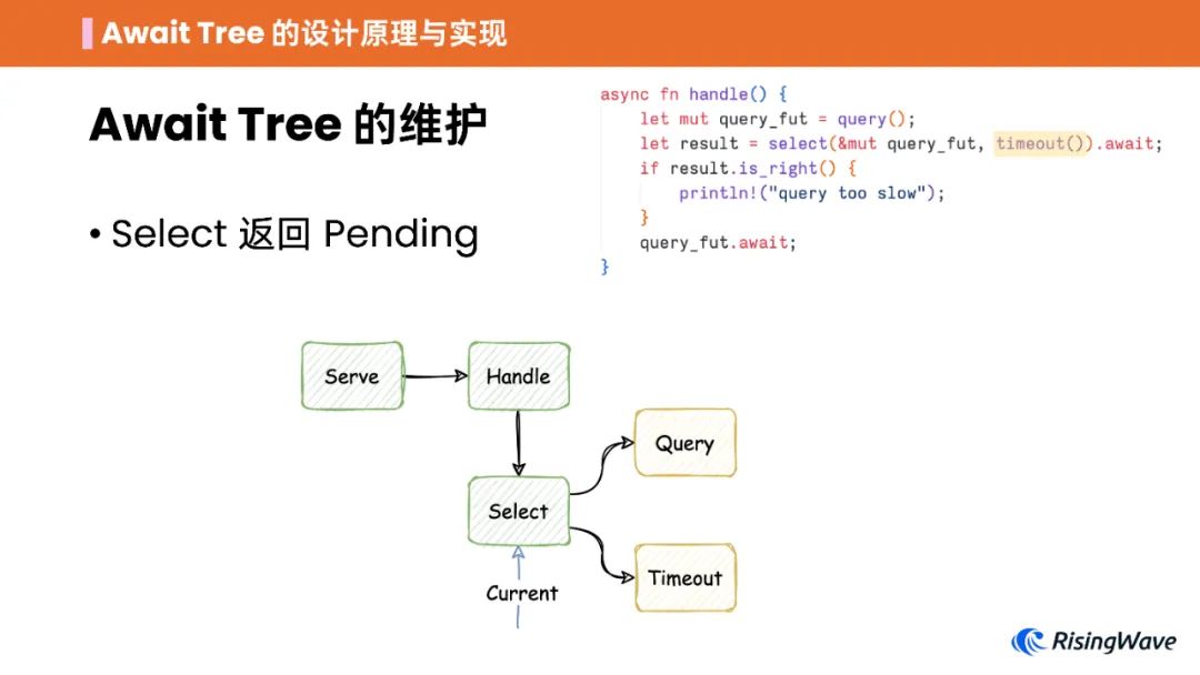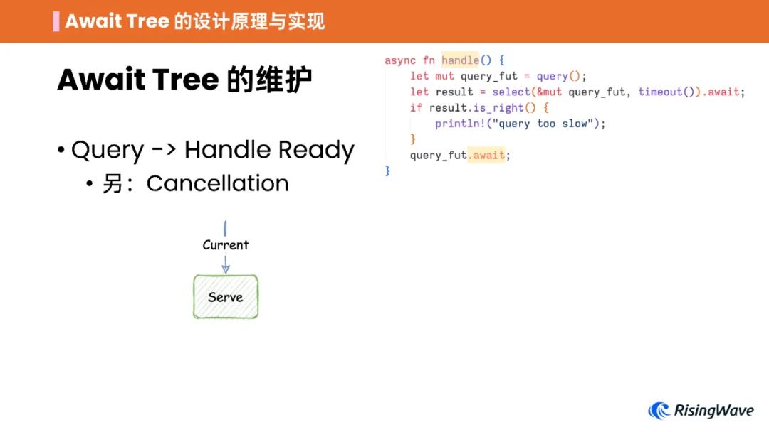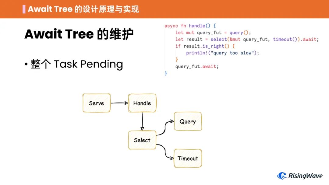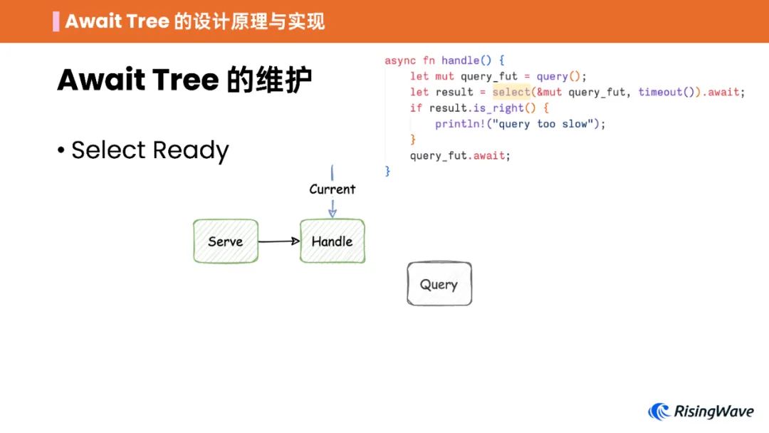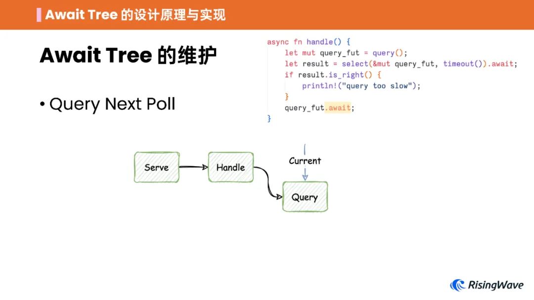 已经执行完毕,因此其在 Await-Tree 上对应的节点可以被删除;而对于query