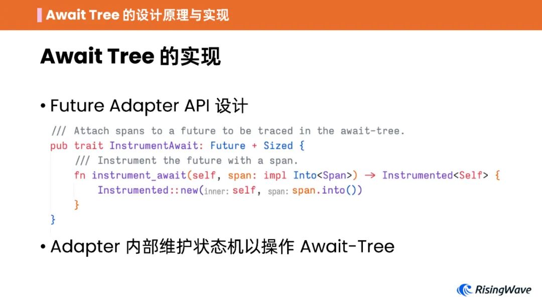 以构造一个包装后的 Future,从而使得该 Future 能够被 Await-Tree 追踪维护。