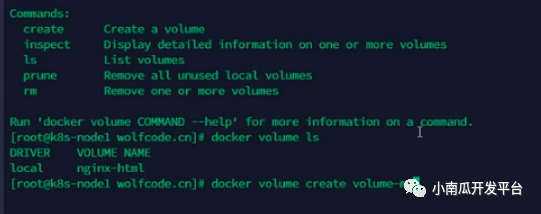 docker volume #查看volume相关命令docker volume create volume-sxf #创建数据卷docker volume inspect volume-sxf#查看数据卷docker volume rm volume-sxf #删除docker volume ls#查看数据卷