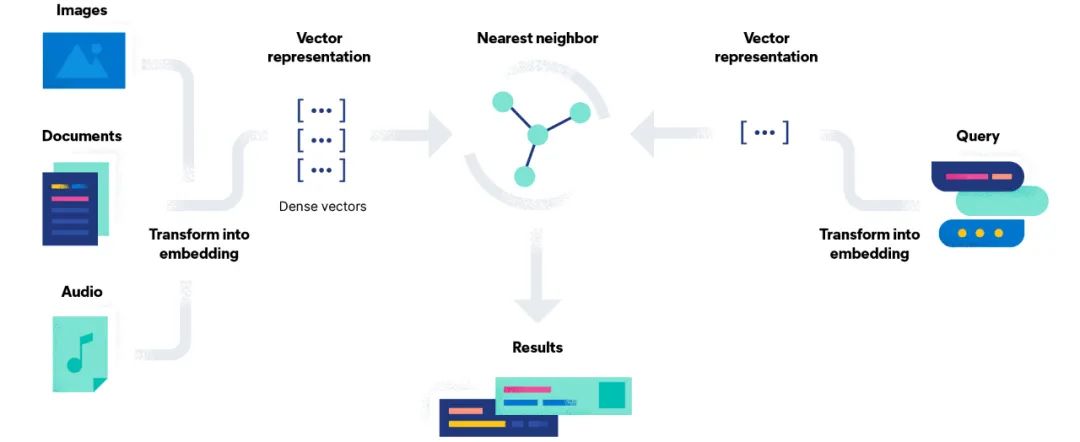 下图清楚地展示了向量搜索引擎的工作原理。它涉及以下几个步骤: