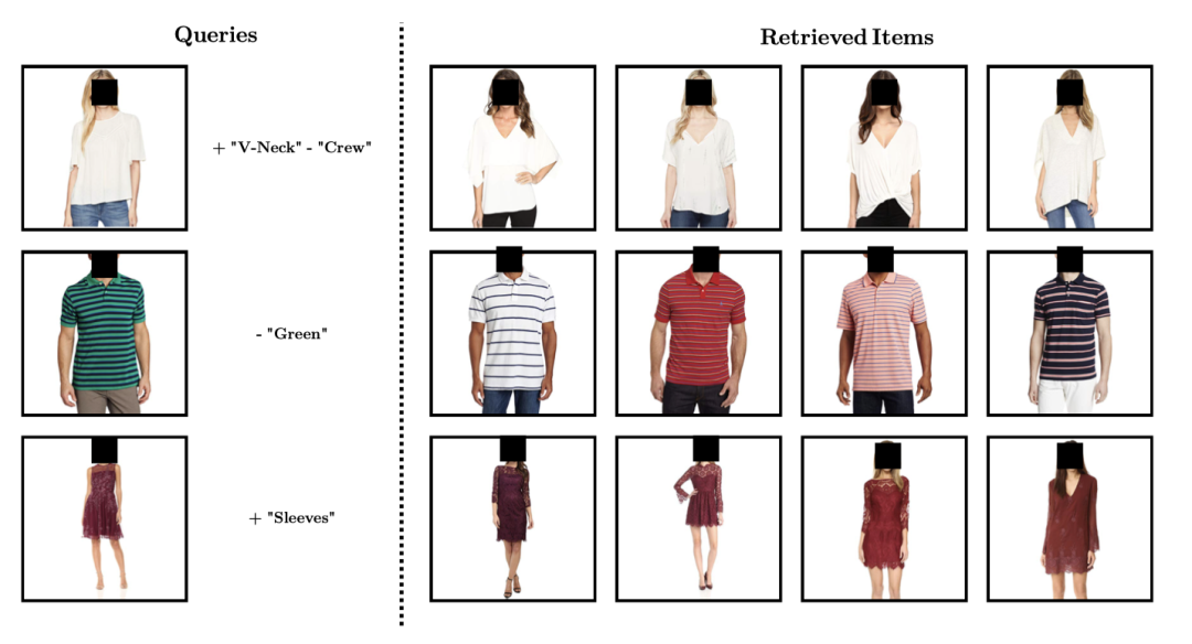 视觉时装搜索时能够操纵属性是一个有意义的场景。文章的背景主要是应用导向的。面向的场景是,用户在搜索一个商品时,给出一张照片和一些文本描述,并通过文本描述修改照片的某些内容。