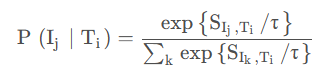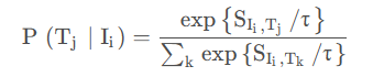 τ是一个温度参数。类似地,Ti 匹配 Ij 的概率: