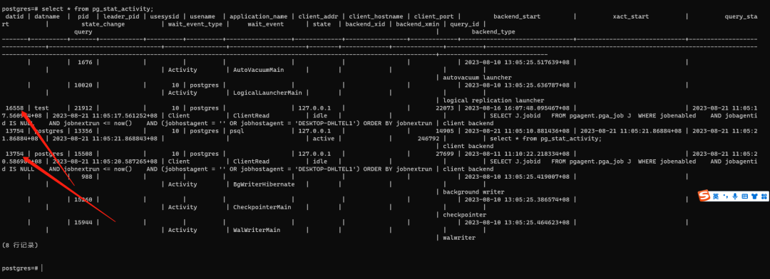 2、连接test数据库(区别于第一个,pgagent启用了debug参数)