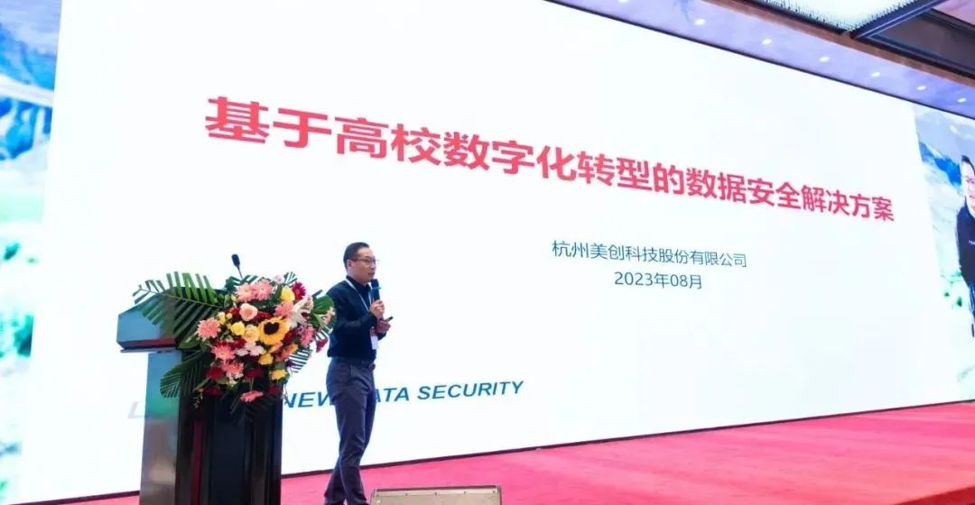 同时,在研讨会上,美创科技生态合作业务中心技术总监王小二进行 “基于高校数字化转型的数据安全解决方案”主题演讲,分享高校数字化转型进程下,高校数据安全面临的威胁挑战以及建设路径。