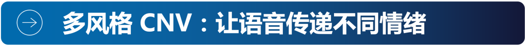 支持更多情感和风格的语音服务,将极大地提升终端用户使用体验。通过多风格 CNV 功能,用户无需额外添加新的训练数据,通过风格转换(Style Transfer)技术即可创建多风格、多情绪的语音表达。
