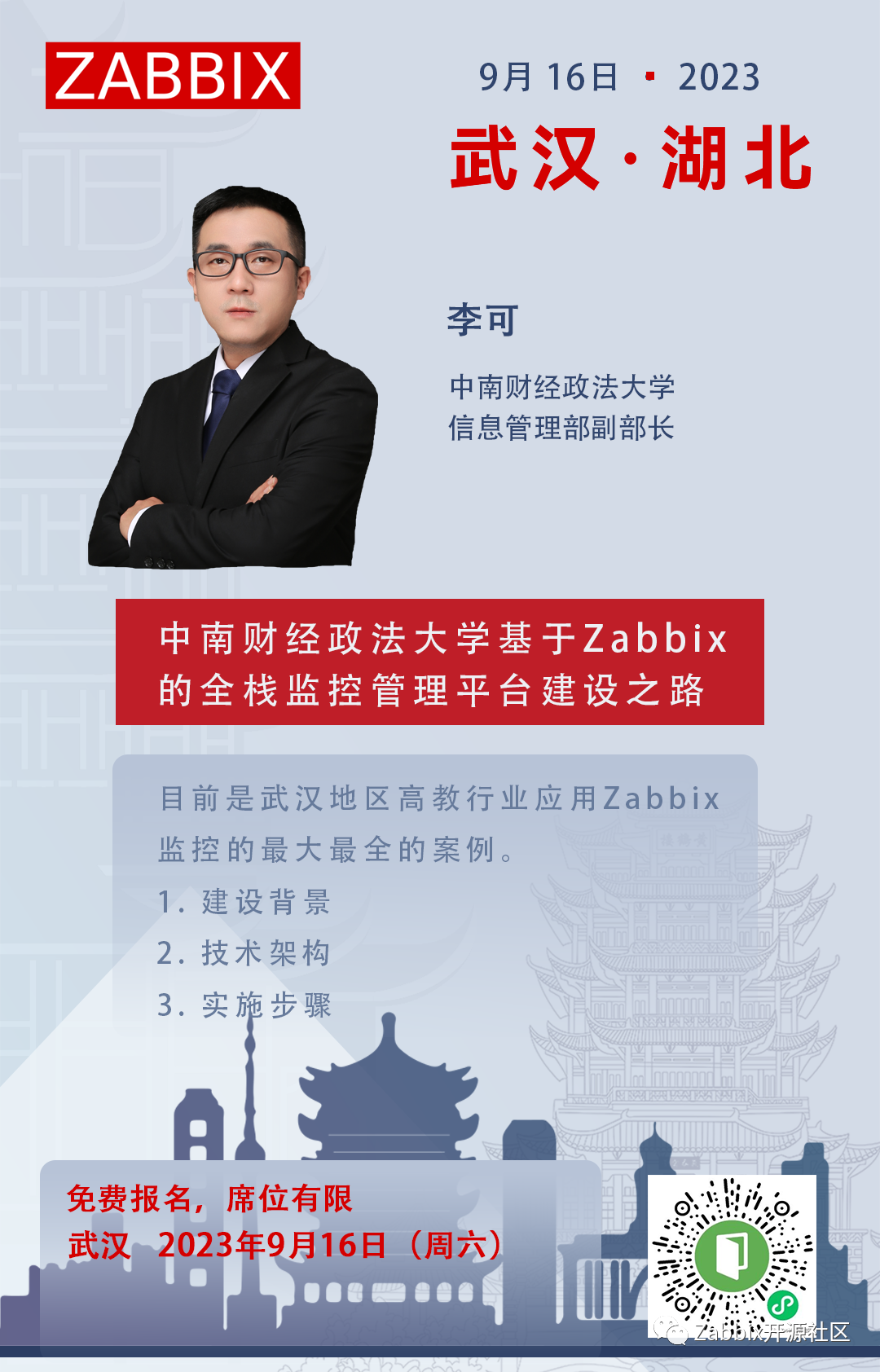 Zabbix官方首次来到武汉与大家见面,将于9月16日(周六下午)召开!