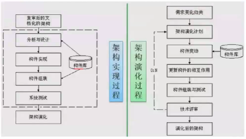 对架构进行改变,按需求增删构件,使架构可复用。(一般提出新需求,这时候则需要演化,是否新增构件,删除构件)
