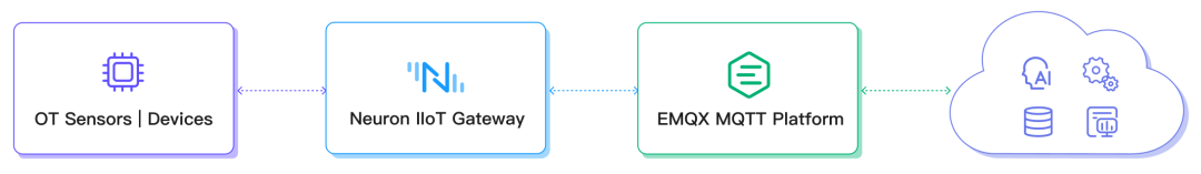 简化连接:作为 MQTT Broker 的 EMQX 和作为工业连接网关的 Neuron 为 MQTT 与各种工业协议的通信提供了无缝连接的桥梁。这种集成简化了各种工业设备、传感器和机器的连接,使它们之间以及与中央系统之间能够以统一的方式进行通信。
