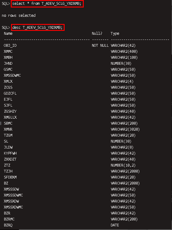 select * from T_ADEV_SCLG_YXDXMB;desc T_ADEV_SCLG_YXDXMB;
