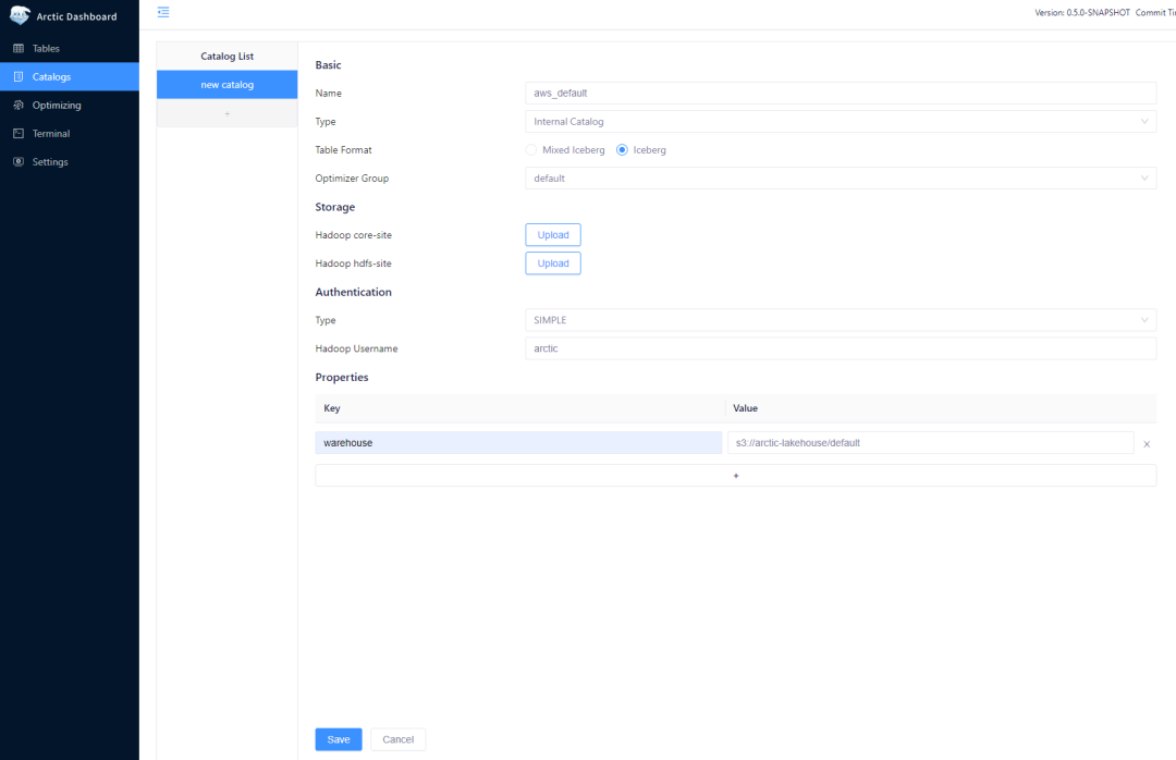 点击保存,一个 Iceberg Catalog 即创建好了。