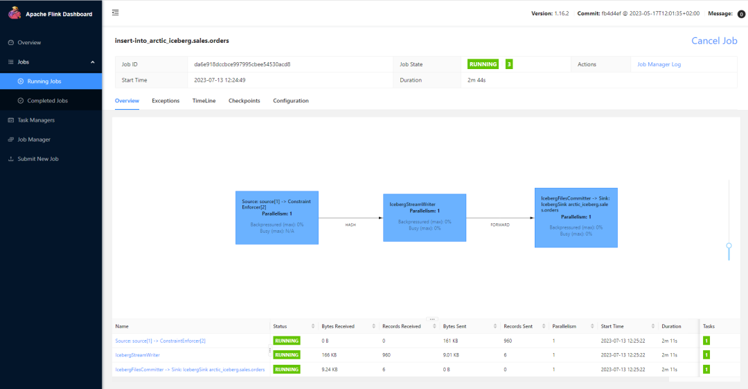root@ip-10-0-12-143:~/flink-1.16.2# kubectl get podsNAME READY STATUS RESTARTS AGEarctic-default-optimizer-5cfd74f7bb-6vkcq 1/1 Running 0 6m13sarctic-default-optimizer-taskmanager-1-1 1/1 Running 0 5m39sarctic-default-optimizer-taskmanager-1-2 1/1 Running 0 5m39sflink-iceberg-session-5f6cc679b7-smbnn 1/1 Running 0 28s