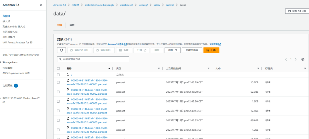 您也可以在 AWS S3 控制页面查看入湖的数据文件。