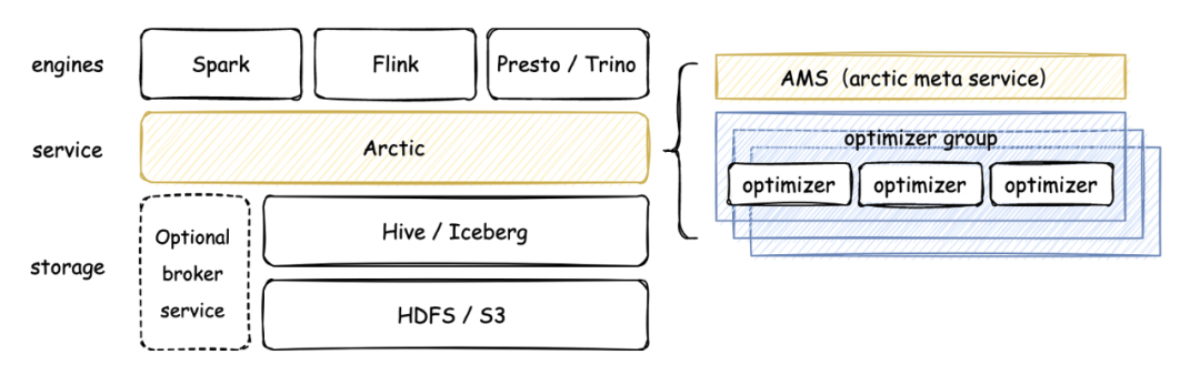 Arctic 是一个开放式架构下的湖仓管理系统,在开放的 lceberg 数据湖格式之上, 提供更多面向流和更新场景的优化,以及一套可插拔的数据自优化机制和管理服务。