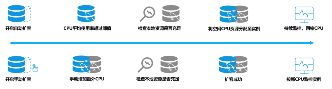 CPU弹性扩容功能分为【自动扩容】 与 【手动扩容】两种类型,其中: