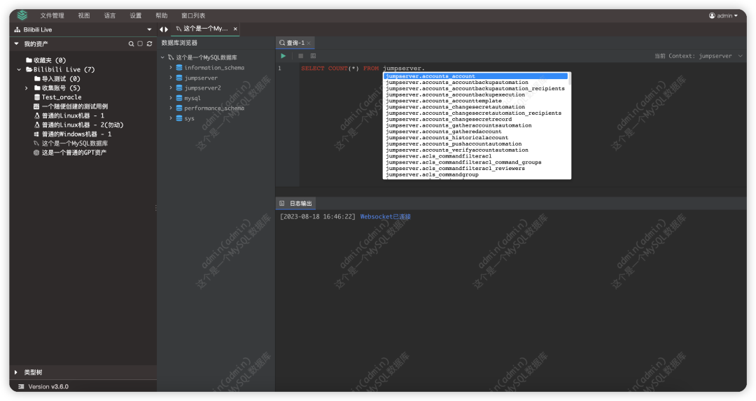 在JumpServer v3.6.0版本中,使用Web GUI方式连接数据库后,在查询有关于表和列的操作时,会有相应的字段提醒功能。