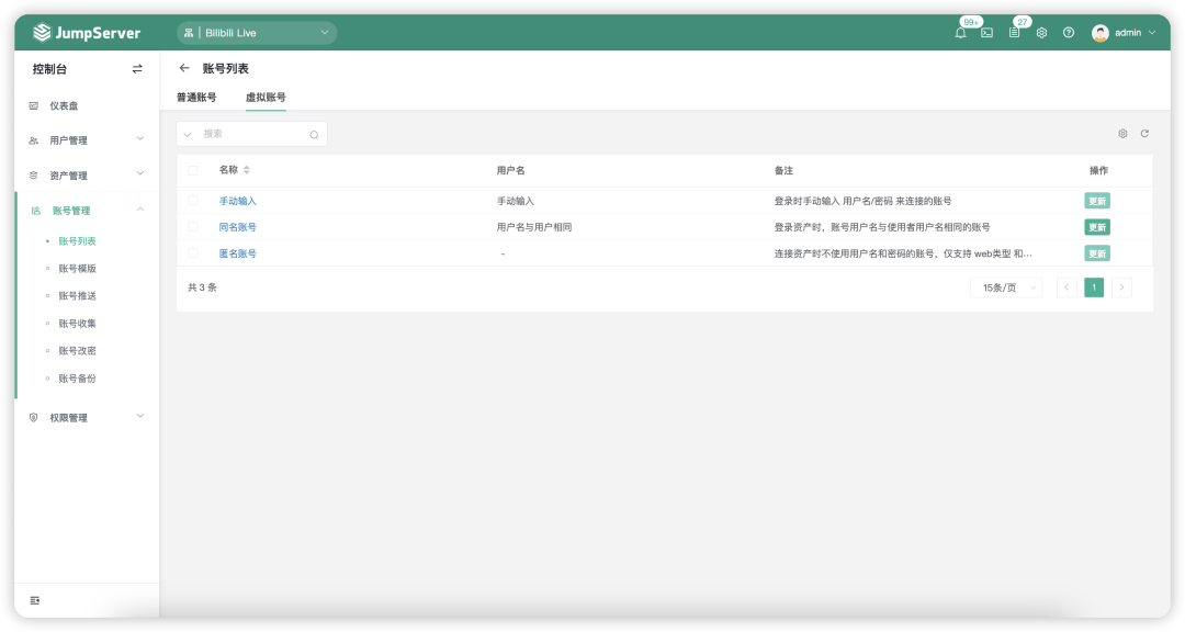 5. 新增虚拟账号列表,支持查看同名账号、手动输入、匿名账号的相关描述信息,支持设置同名账号的密码使用策略