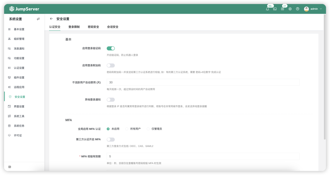 管理员层面,该版本支持管理员对在线会话执行暂停和恢复操作,支持配置会话的最大在线时长,并且支持将长时间未登录的用户重置为“未激活”状态。另外,在远程应用方面,JumpServer支持单个远程应用一键批量部署到多台发布机,增强了管理员对堡垒机上资产的控制能力。