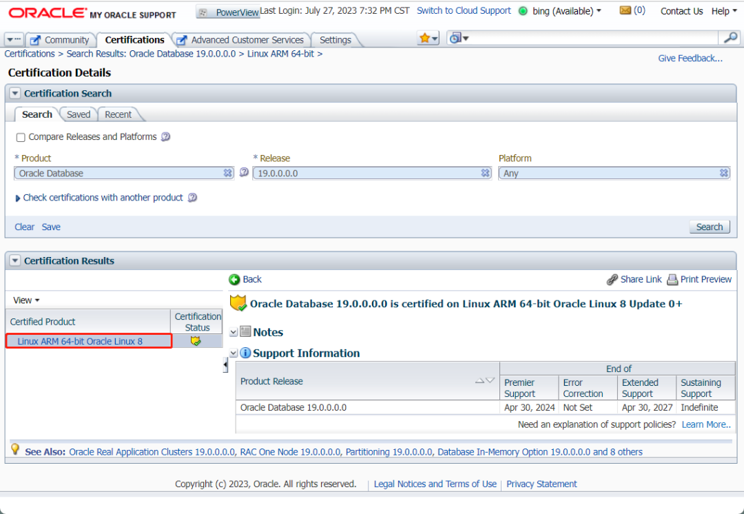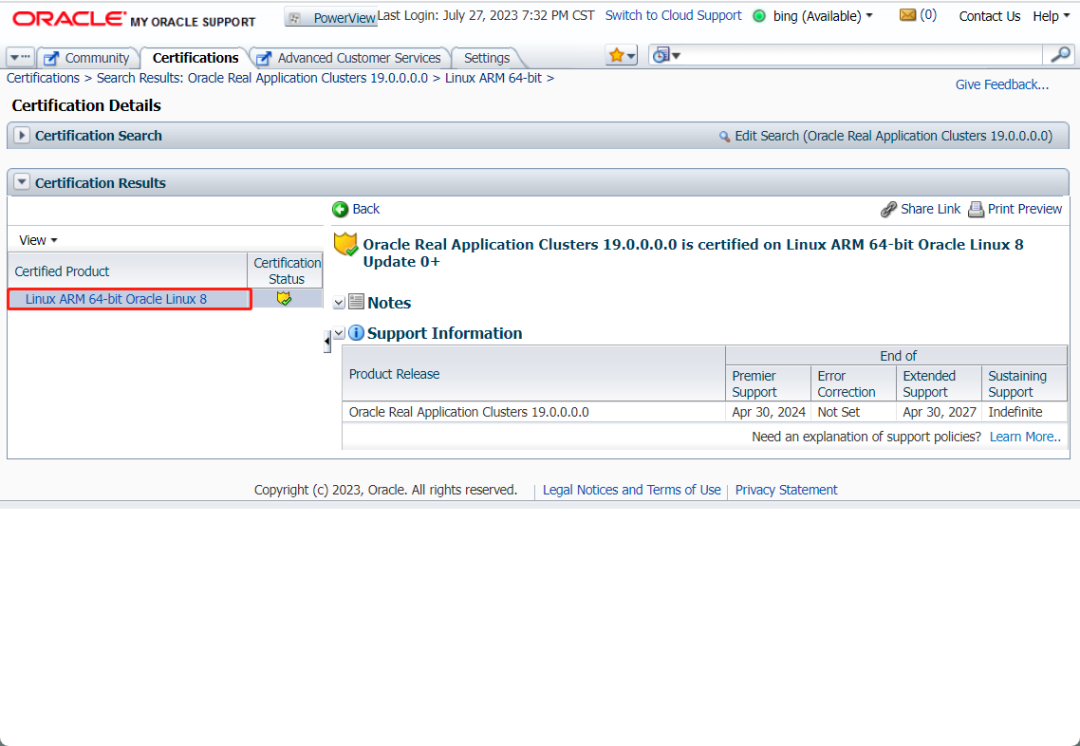 DB和RAC都是只认证Oracle Linux 8,没有其他注意事项,并没有说只能跑在Ampere CPU上,或者说只能在OCI(Oracle Cloud Infrastructure)上跑。如果说Oracle只支持在OCI上跑Oracle