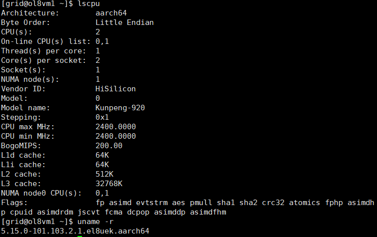 另外,发现UEK内核能直接识别出kunpeng-920 CPU。