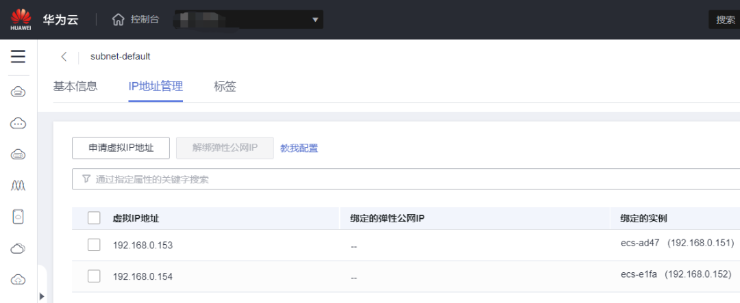 在云上测试,我遇到的问题主要是和虚拟化有关。具体说是和一个网卡多个IP地址有关,在华为云上,给一个网卡设置多个IP地址(HAIP,VIP,SCANIP)的话,需要在控制台给“弹性网卡”(虚拟网卡) “申请虚拟IP”,否则虚拟IP之间无法通信,且虚拟IP必须和网卡上的主IP是同网段。