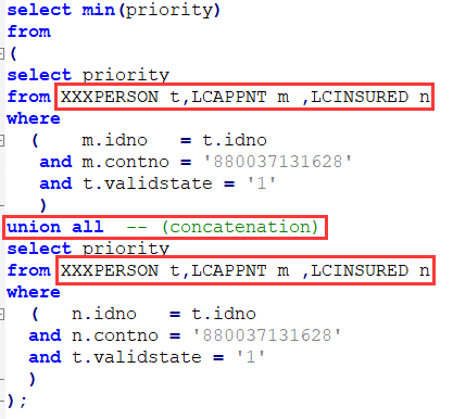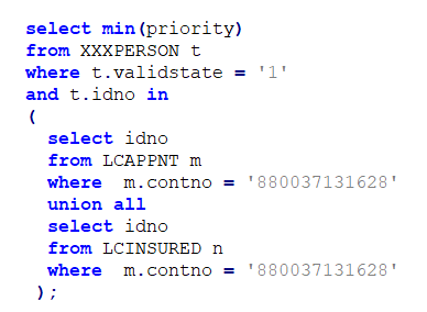 优化前的SQL是这个样子的(做了一点简化,去掉了一些无关紧要的干扰信息,看起来更清晰):