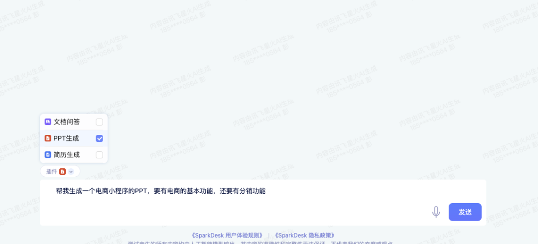比如接到一个小程序电商的小项目,先要些一个PPT大纲吧,直接向星火大模型输入:"帮我生成一个电商小程序的PPT大概,要有电商的基本功能,还要有分销"
