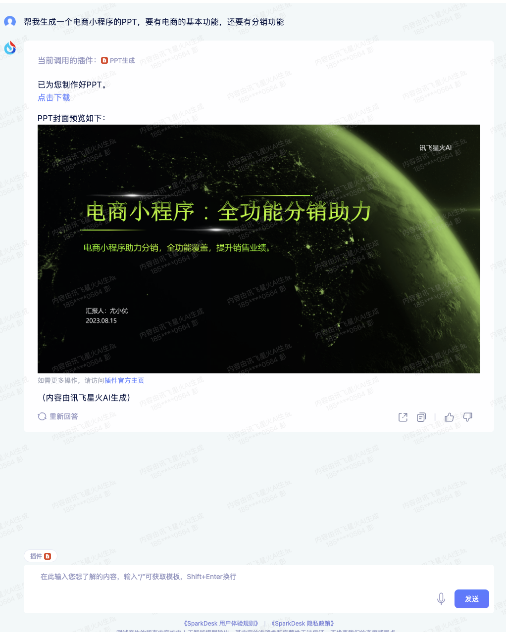 下面开始讯飞AI的表演,吧啦吧啦1分钟过去就生成好了,自己下载来下