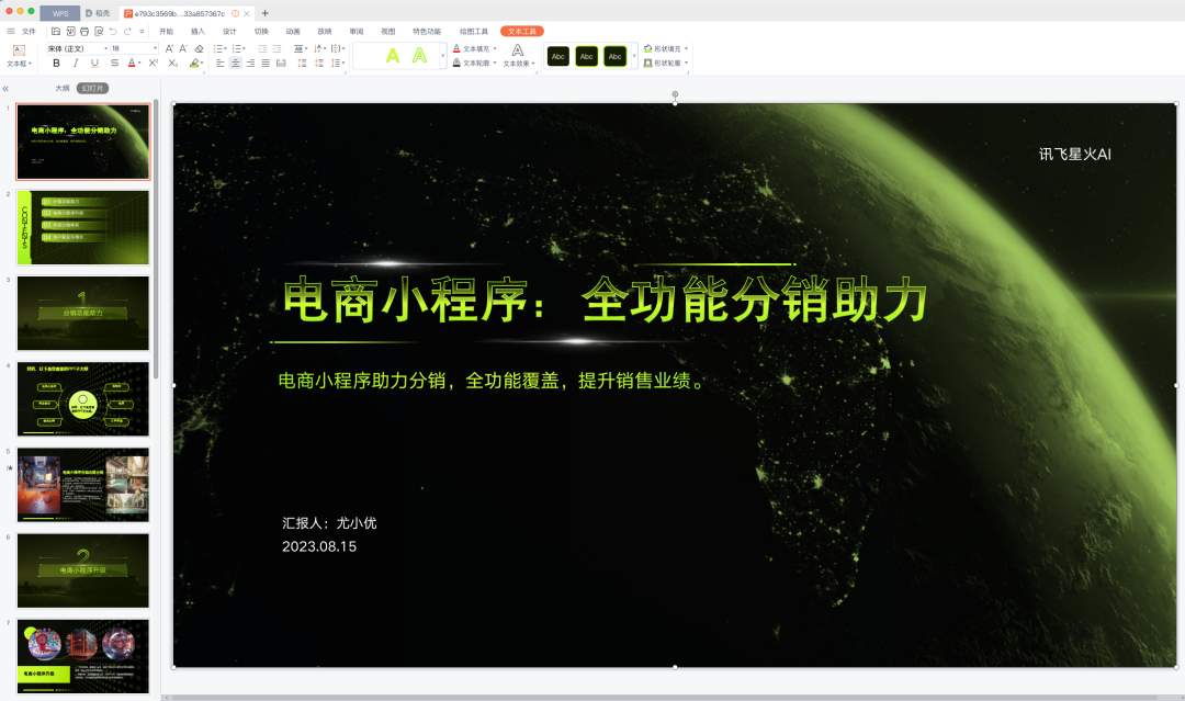 因为工作原因平时经常会给甲方演示项目的PPT,做PPT有时候很费时间的,讯飞刚好有PPT生成功能,于是我就使用讯飞星火大模型进行了尝试。