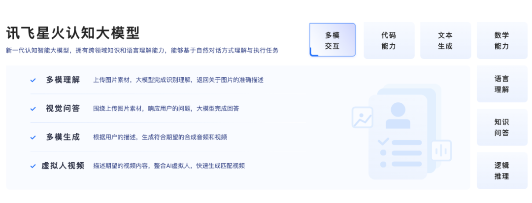 讯飞星火认知大模型V2.0发布会上发布了代码和多模态能力,这里跟大家简单科普一下多模态指的是多种模态的信息,包括:文本、图像、视频、音频等,你甚至可以广泛的认为一些能传达信息的物品都属于多模态。